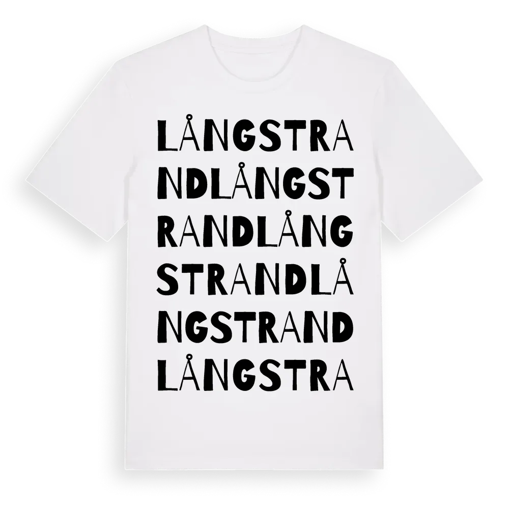 Långstrand ordlek t-shirt är inspirerad av Långstrand i Västerbottens län, Sverige. Tröjan är designad för dig som har en speciell koppling till platsen – oavsett om du bor här, har rötterna här eller bara älskar Långstrand.