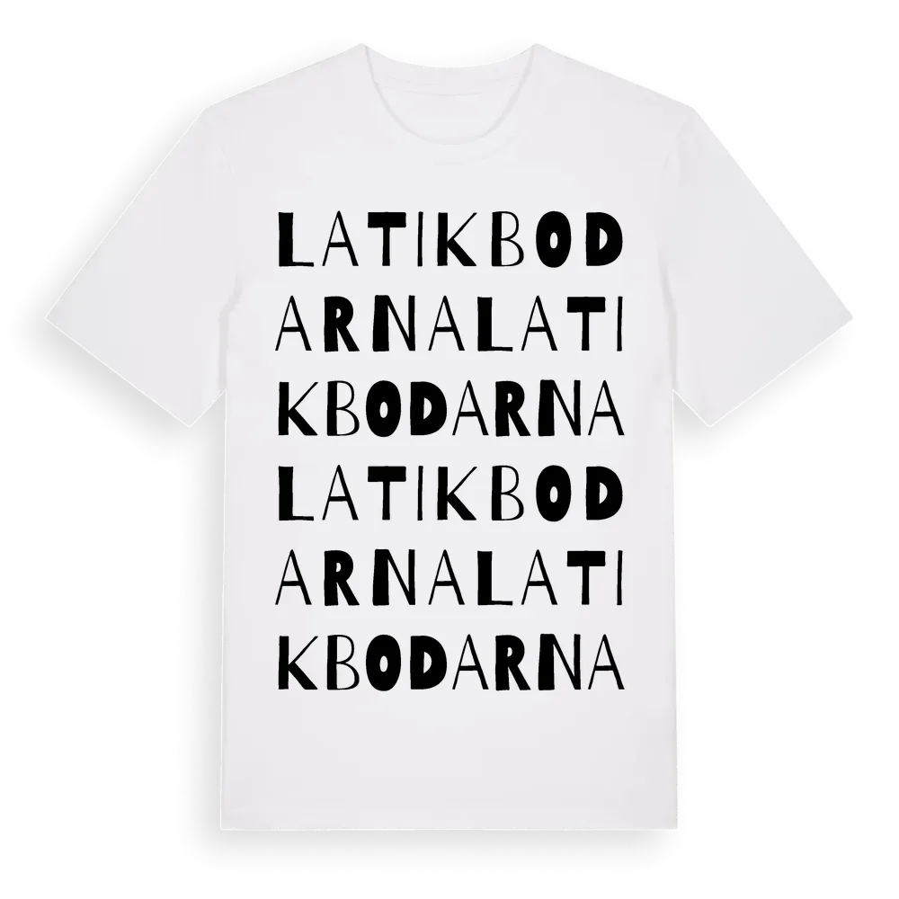 Latikbodarna ordlek t-shirt är inspirerad av Latikbodarna i Västerbottens län, Sverige. Tröjan är designad för dig som har en speciell koppling till platsen – oavsett om du bor här, har rötterna här eller bara älskar Latikbodarna.