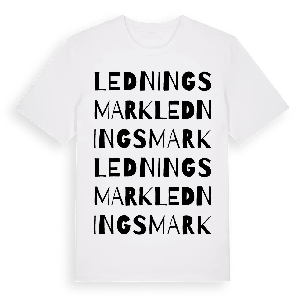 Ledningsmark ordlek t-shirt är inspirerad av byn Ledningsmark i Västerbottens län, Sverige. Tröjan är designad för dig som har en speciell koppling till platsen – oavsett om du bor här, har rötterna här eller bara älskar Ledningsmark.