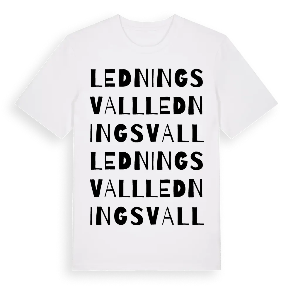 Ledningsvall ordlek t-shirt är inspirerad av byn Ledningsvall i Västerbottens län, Sverige. Tröjan är designad för dig som har en speciell koppling till platsen – oavsett om du bor här, har rötterna här eller bara älskar Ledningsvall.