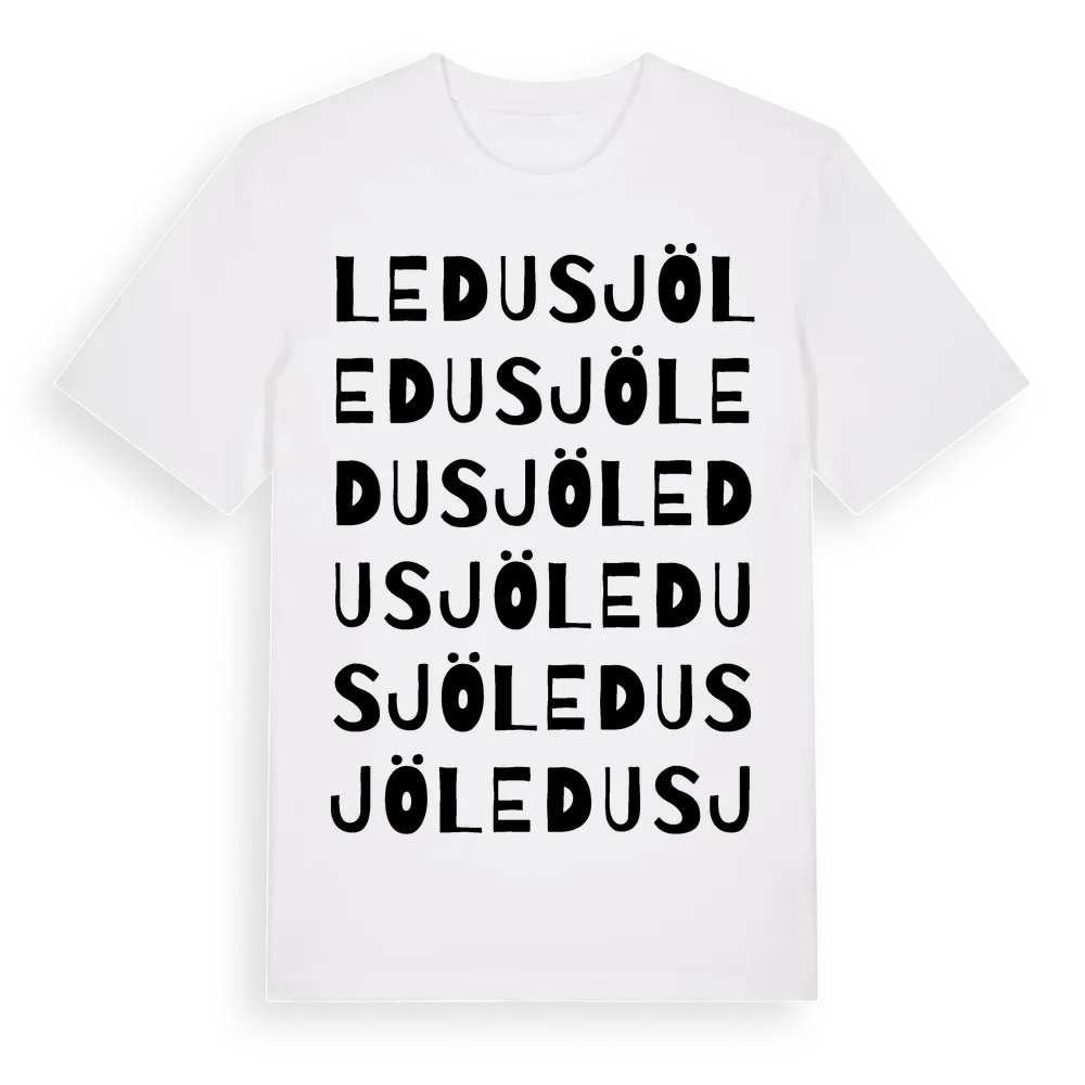 Ledusjö ordlek t-shirt är inspirerad av byn Ledusjö i Västerbottens län, Sverige. Tröjan är designad för dig som har en speciell koppling till platsen – oavsett om du bor här, har rötterna här eller bara älskar Ledusjö.