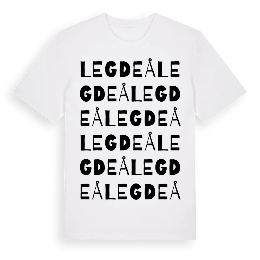 Legdeå ordlek t-shirt är inspirerad av byn Legdeå i Västerbottens län, Sverige. Tröjan är designad för dig som har en speciell koppling till platsen – oavsett om du bor här, har rötterna här eller bara älskar Legdeå.