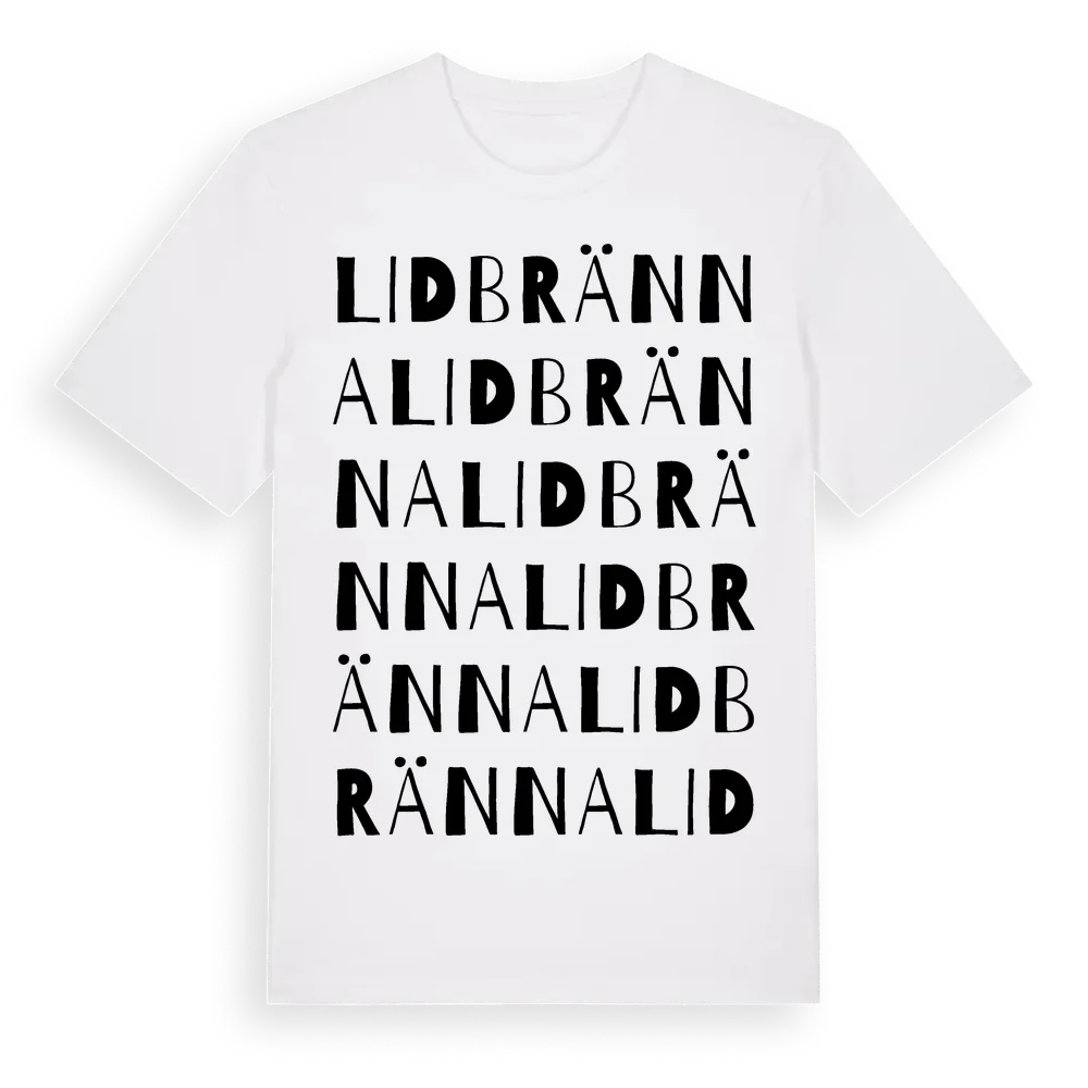 Lidbränna ordlek t-shirt är inspirerad av byn Lidbränna i Västerbottens län, Sverige. Tröjan är designad för dig som har en speciell koppling till platsen – oavsett om du bor här, har rötterna här eller bara älskar Lidbränna.