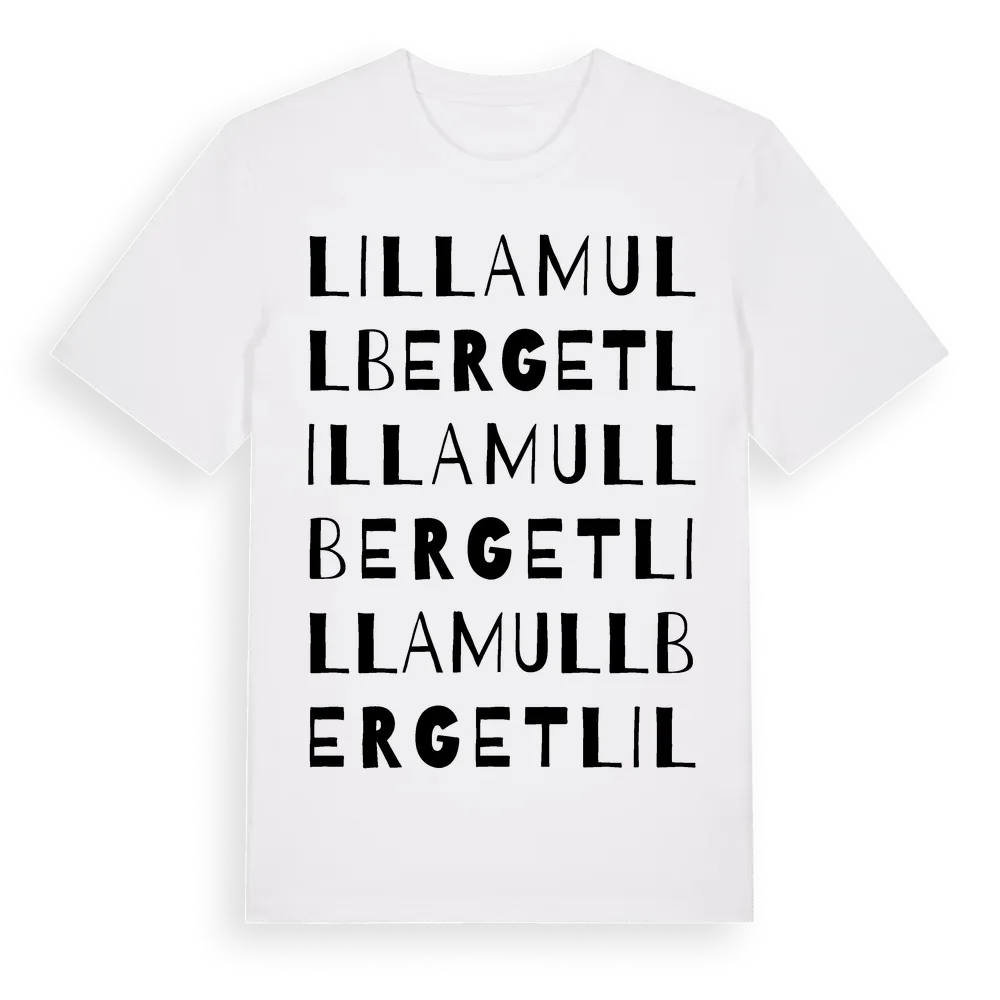 Lilla Mullberget ordlek t-shirt är inspirerad av Lilla Mullberget i Västerbottens län, Sverige. Tröjan är designad för dig som har en speciell koppling till platsen – oavsett om du bor här, har rötterna här eller bara älskar Lilla Mullberget.