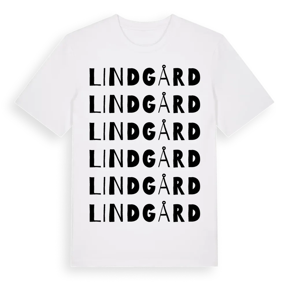 Lindgård ordlek t-shirt är inspirerad av Lindgård i Västerbottens län, Sverige. Tröjan är designad för dig som har en speciell koppling till platsen – oavsett om du bor här, har rötterna här eller bara älskar Lindgård.