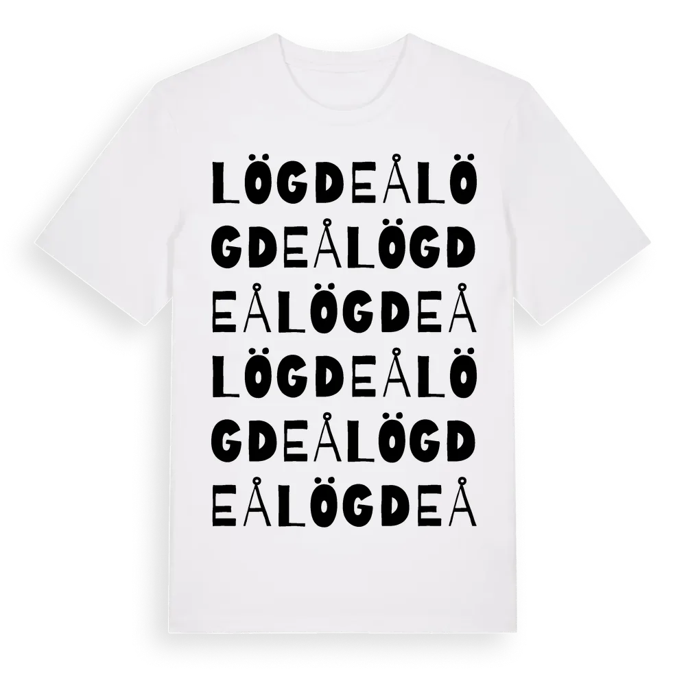 Lögdeå ordlek t-shirt är inspirerad av byn Lögdeå i Västerbottens län, Sverige. Tröjan är designad för dig som har en speciell koppling till platsen – oavsett om du bor här, har rötterna här eller bara älskar Lögdeå.
