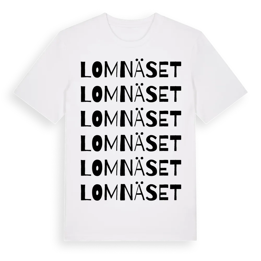 Lomnäset ordlek t-shirt är inspirerad av byn Lomnäset i Västerbottens län, Sverige. Tröjan är designad för dig som har en speciell koppling till platsen – oavsett om du bor här, har rötterna här eller bara älskar Lomnäset.