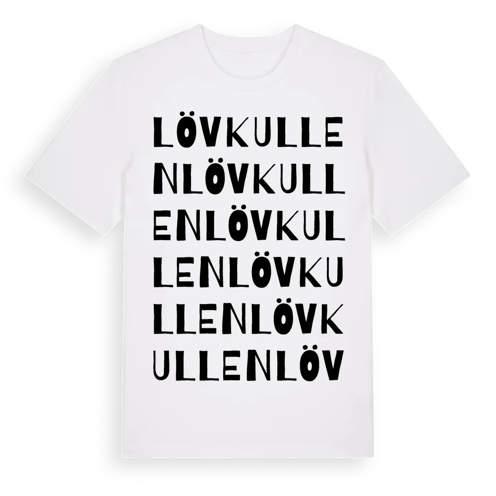 Lövkullen ordlek t-shirt är inspirerad av Lövkullen i Västerbottens län, Sverige. Tröjan är designad för dig som har en speciell koppling till platsen – oavsett om du bor här, har rötterna här eller bara älskar Lövkullen.