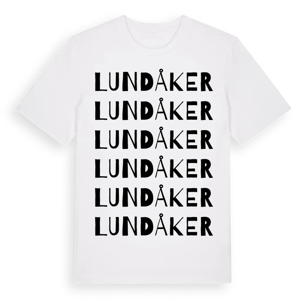 Lundåker ordlek t-shirt är inspirerad av Lundåker i Västerbottens län, Sverige. Tröjan är designad för dig som har en speciell koppling till platsen – oavsett om du bor här, har rötterna här eller bara älskar Lundåker.
