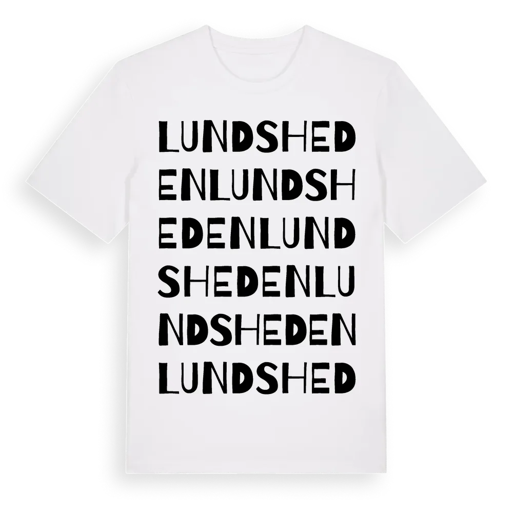 Lundsheden ordlek t-shirt är inspirerad av Lundsheden i Västerbottens län, Sverige. Tröjan är designad för dig som har en speciell koppling till platsen – oavsett om du bor här, har rötterna här eller bara älskar Lundsheden.