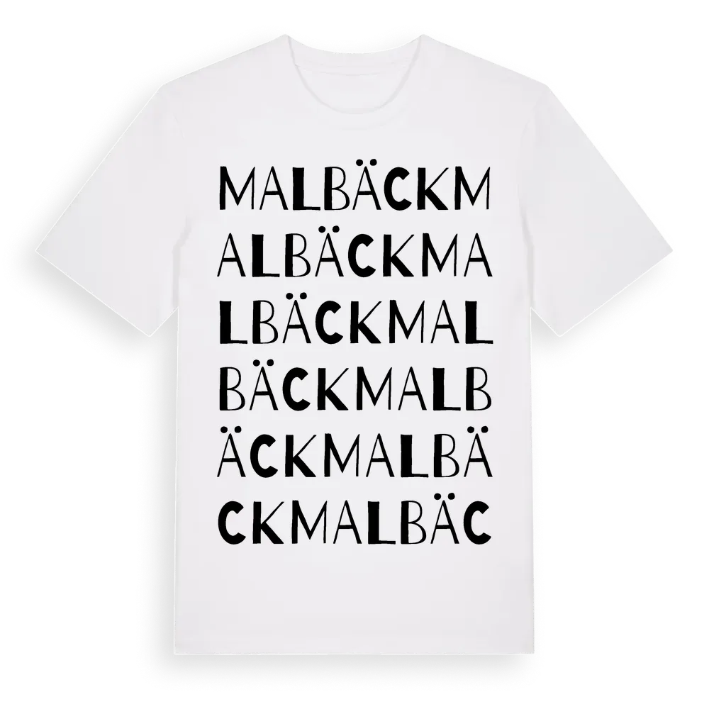Malbäck ordlek t-shirt är inspirerad av byn Malbäck i Västerbottens län, Sverige. Tröjan är designad för dig som har en speciell koppling till platsen – oavsett om du bor här, har rötterna här eller bara älskar Malbäck.