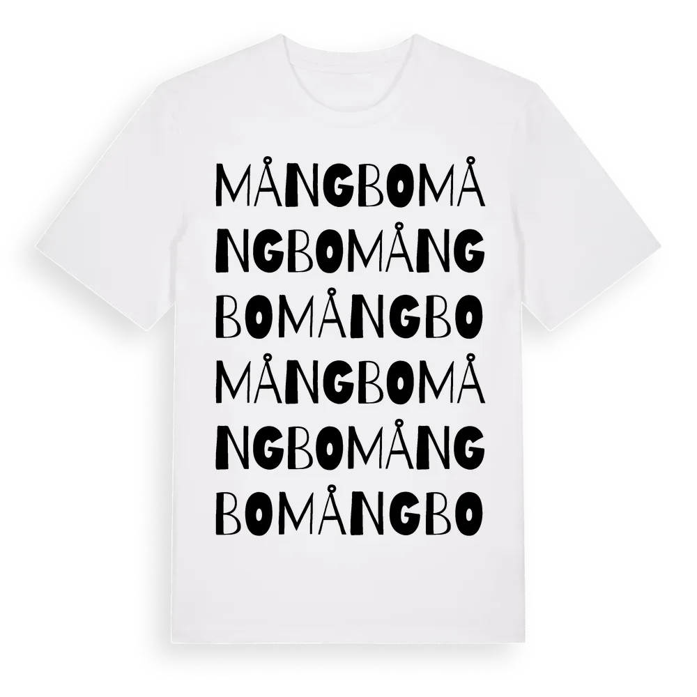 Mångbo ordlek t-shirt är inspirerad av Mångbo i Västerbottens län, Sverige. Tröjan är designad för dig som har en speciell koppling till platsen – oavsett om du bor här, har rötterna här eller bara älskar Mångbo.