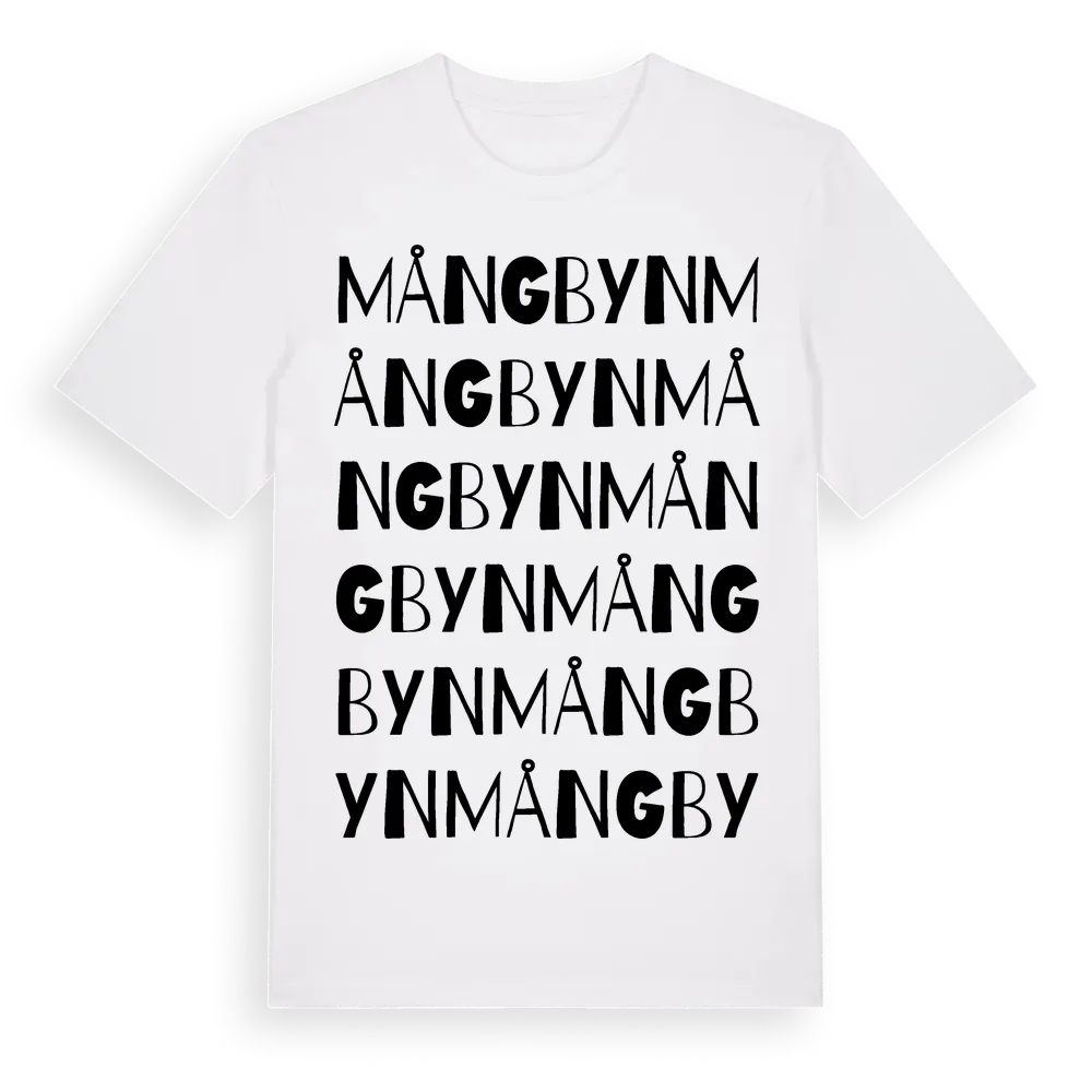 Mångbyn ordlek t-shirt är inspirerad av byn Mångbyn i Västerbottens län, Sverige. Tröjan är designad för dig som har en speciell koppling till platsen – oavsett om du bor här, har rötterna här eller bara älskar Mångbyn.