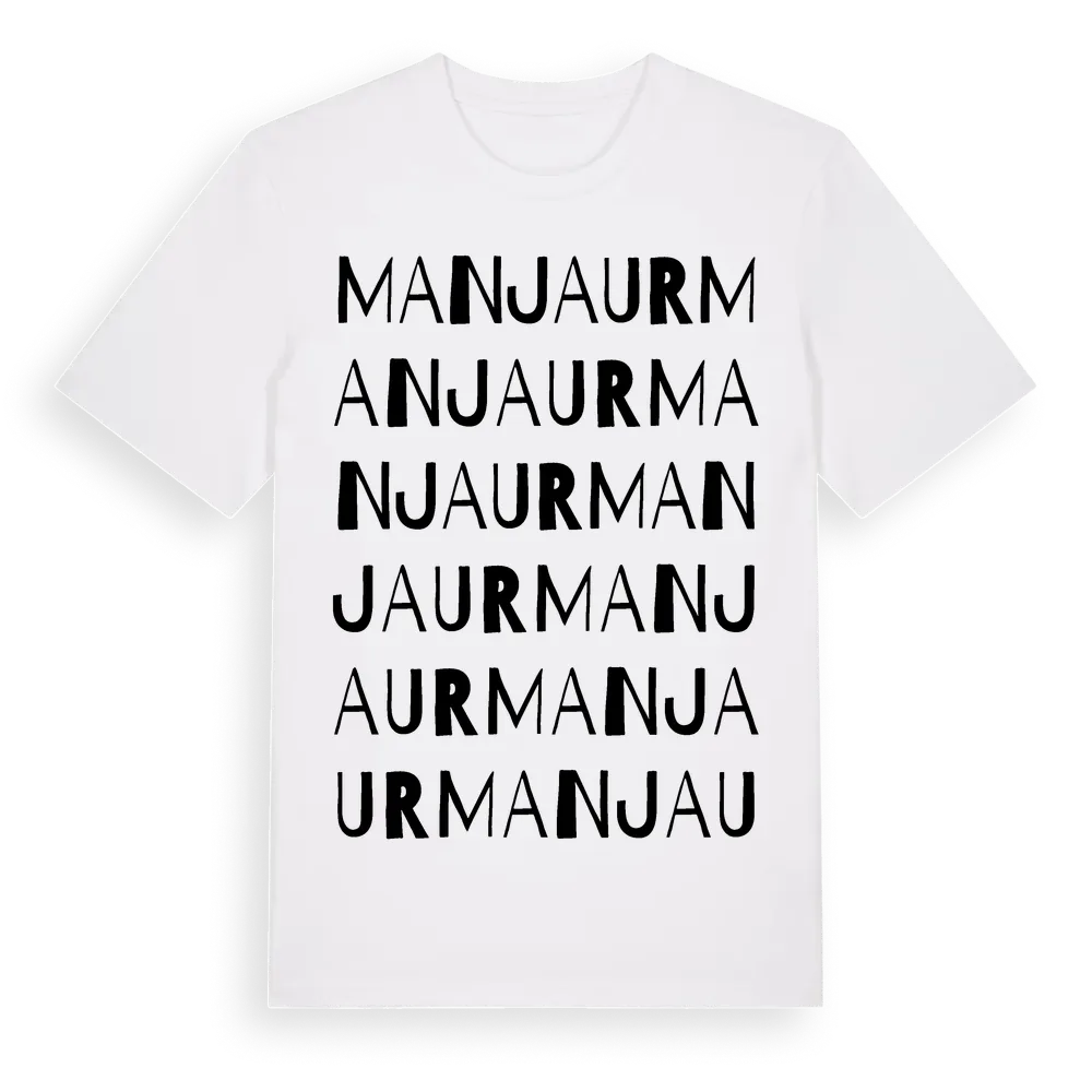 Manjaur ordlek t-shirt är inspirerad av byn Manjaur i Västerbottens län, Sverige. Tröjan är designad för dig som har en speciell koppling till platsen – oavsett om du bor här, har rötterna här eller bara älskar Manjaur.