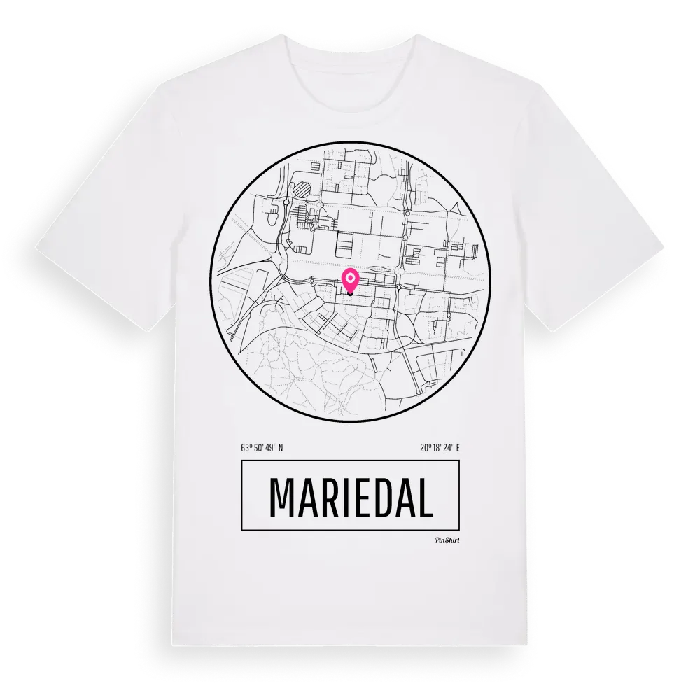 Mariedal t-shirt är inspirerad av stadsdelen Mariedal i Västerbottens län, Sverige. Tröjan är designad för dig som har en speciell koppling till platsen – oavsett om du bor här, har rötterna här eller bara älskar Mariedal.