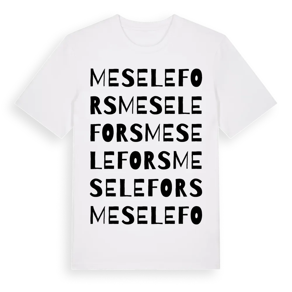 Meselefors ordlek t-shirt är inspirerad av byn Meselefors i Västerbottens län, Sverige. Tröjan är designad för dig som har en speciell koppling till platsen – oavsett om du bor här, har rötterna här eller bara älskar Meselefors.