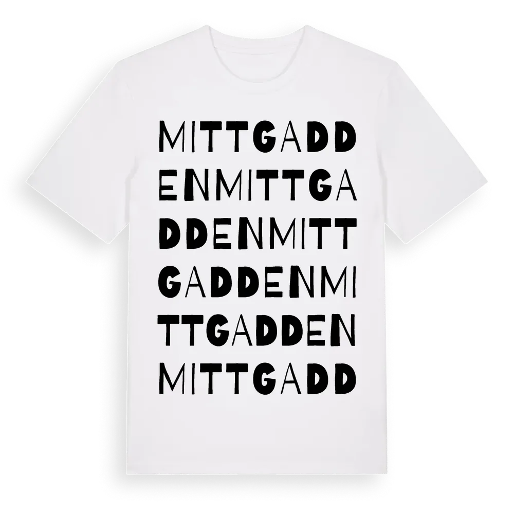 Mittgadden ordlek t-shirt är inspirerad av Mittgadden i Västerbottens län, Sverige. Tröjan är designad för dig som har en speciell koppling till platsen – oavsett om du bor här, har rötterna här eller bara älskar Mittgadden.