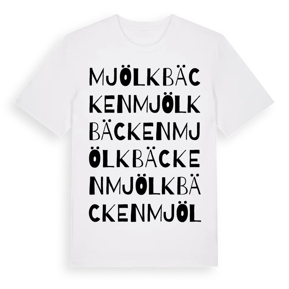 Mjölkbäcken ordlek t-shirt är inspirerad av byn Mjölkbäcken i Västerbottens län, Sverige. Tröjan är designad för dig som har en speciell koppling till platsen – oavsett om du bor här, har rötterna här eller bara älskar Mjölkbäcken.