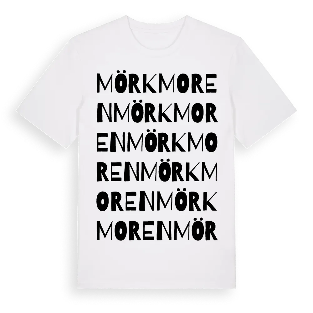 Mörkmoren ordlek t-shirt är inspirerad av Mörkmoren i Västerbottens län, Sverige. Tröjan är designad för dig som har en speciell koppling till platsen – oavsett om du bor här, har rötterna här eller bara älskar Mörkmoren.