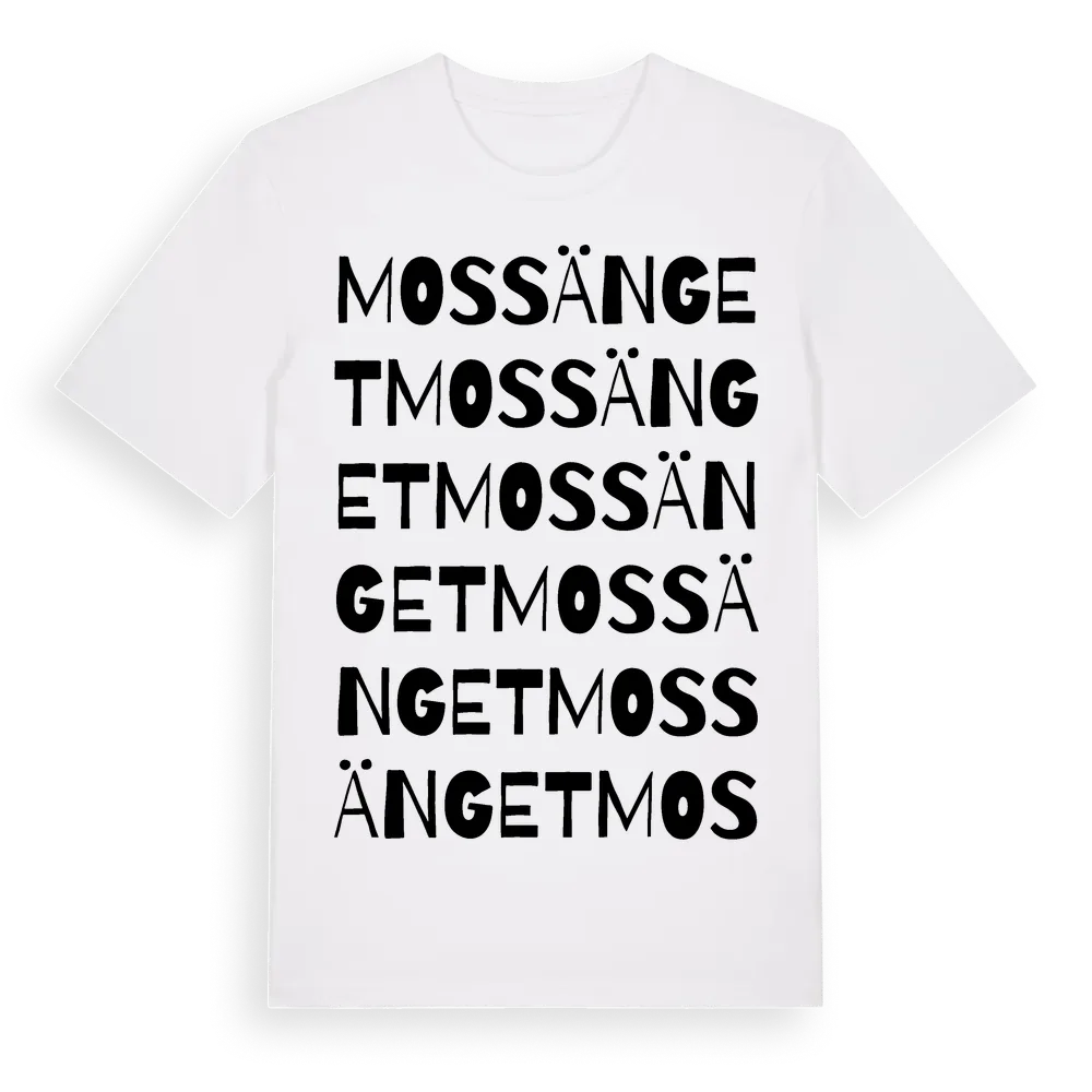 Mossänget ordlek t-shirt är inspirerad av Mossänget i Västerbottens län, Sverige. Tröjan är designad för dig som har en speciell koppling till platsen – oavsett om du bor här, har rötterna här eller bara älskar Mossänget.