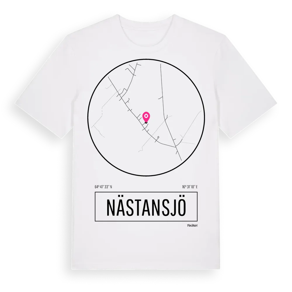 Nästansjö t-shirt är inspirerad av byn Nästansjö i Västerbottens län, Sverige. Tröjan är designad för dig som har en speciell koppling till platsen – oavsett om du bor här, har rötterna här eller bara älskar Nästansjö.