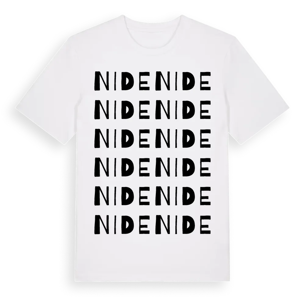 Nide ordlek t-shirt är inspirerad av byn Nide i Västerbottens län, Sverige. Tröjan är designad för dig som har en speciell koppling till platsen – oavsett om du bor här, har rötterna här eller bara älskar Nide.