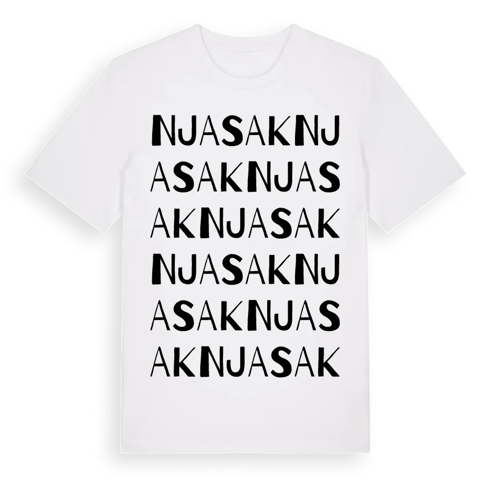 Njasak ordlek t-shirt är inspirerad av Njasak i Västerbottens län, Sverige. Tröjan är designad för dig som har en speciell koppling till platsen – oavsett om du bor här, har rötterna här eller bara älskar Njasak.