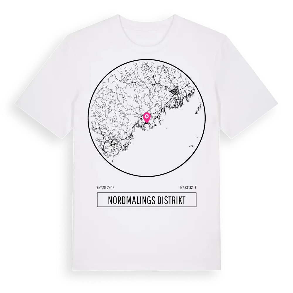 Nordmalings Distrikt t-shirt är inspirerad av Nordmalings Distrikt i Västerbottens län, Sverige. Tröjan är designad för dig som har en speciell koppling till platsen – oavsett om du bor här, har rötterna här eller bara älskar Nordmalings Distrikt.