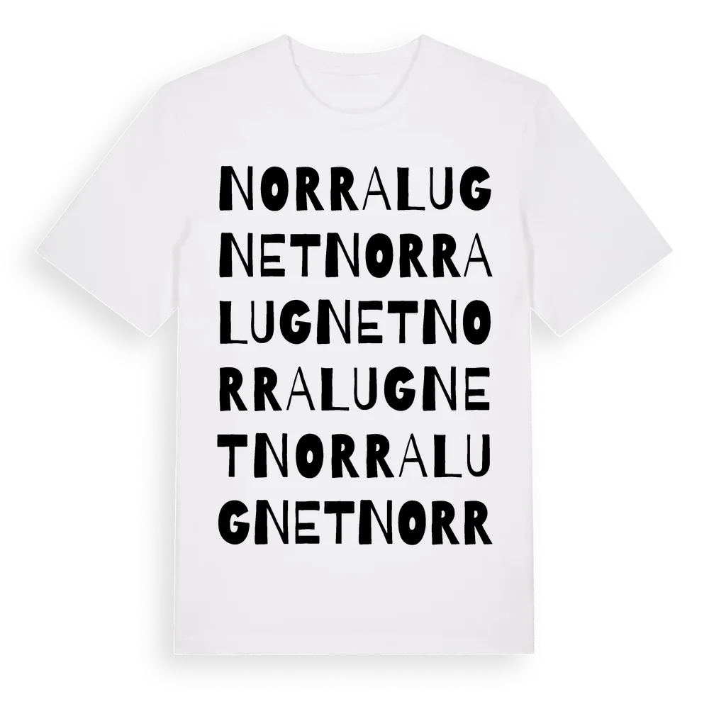 Norra Lugnet ordlek t-shirt är inspirerad av Norra Lugnet i Västerbottens län, Sverige. Tröjan är designad för dig som har en speciell koppling till platsen – oavsett om du bor här, har rötterna här eller bara älskar Norra Lugnet.