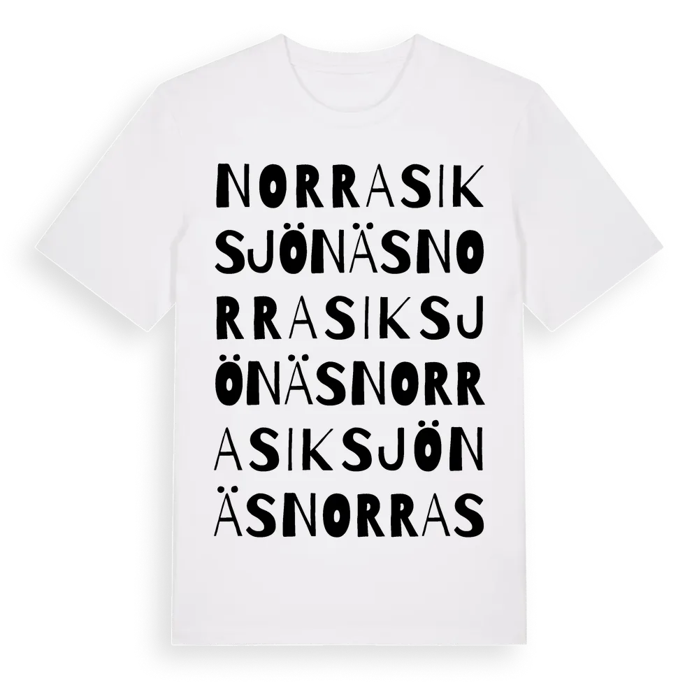 Norra Siksjönäs ordlek t-shirt är inspirerad av Norra Siksjönäs i Västerbottens län, Sverige. Tröjan är designad för dig som har en speciell koppling till platsen – oavsett om du bor här, har rötterna här eller bara älskar Norra Siksjönäs.