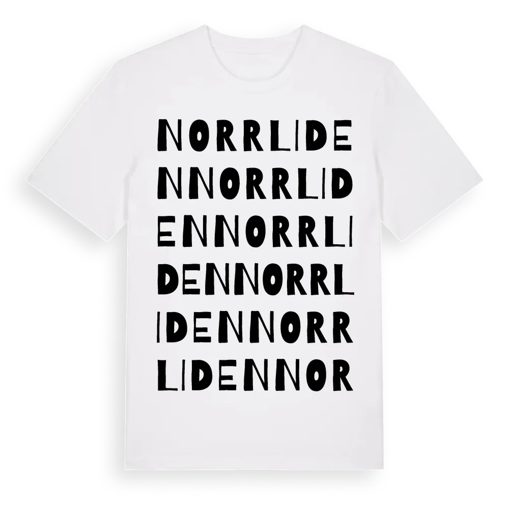 Norrliden ordlek t-shirt är inspirerad av Norrliden i Västerbottens län, Sverige. Tröjan är designad för dig som har en speciell koppling till platsen – oavsett om du bor här, har rötterna här eller bara älskar Norrliden.