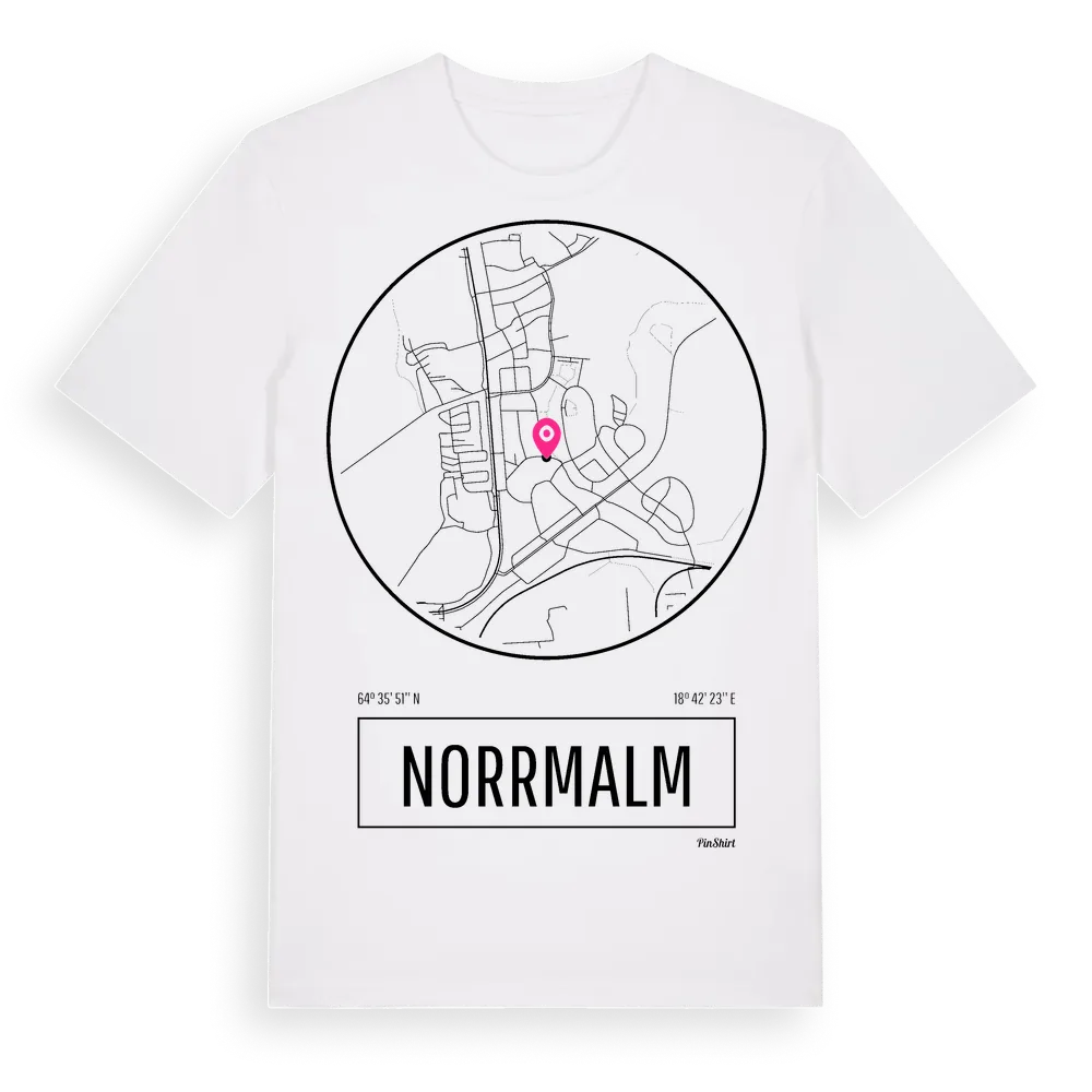 Norrmalm t-shirt är inspirerad av stadsdelen Norrmalm i Västerbottens län, Sverige. Tröjan är designad för dig som har en speciell koppling till platsen – oavsett om du bor här, har rötterna här eller bara älskar Norrmalm.