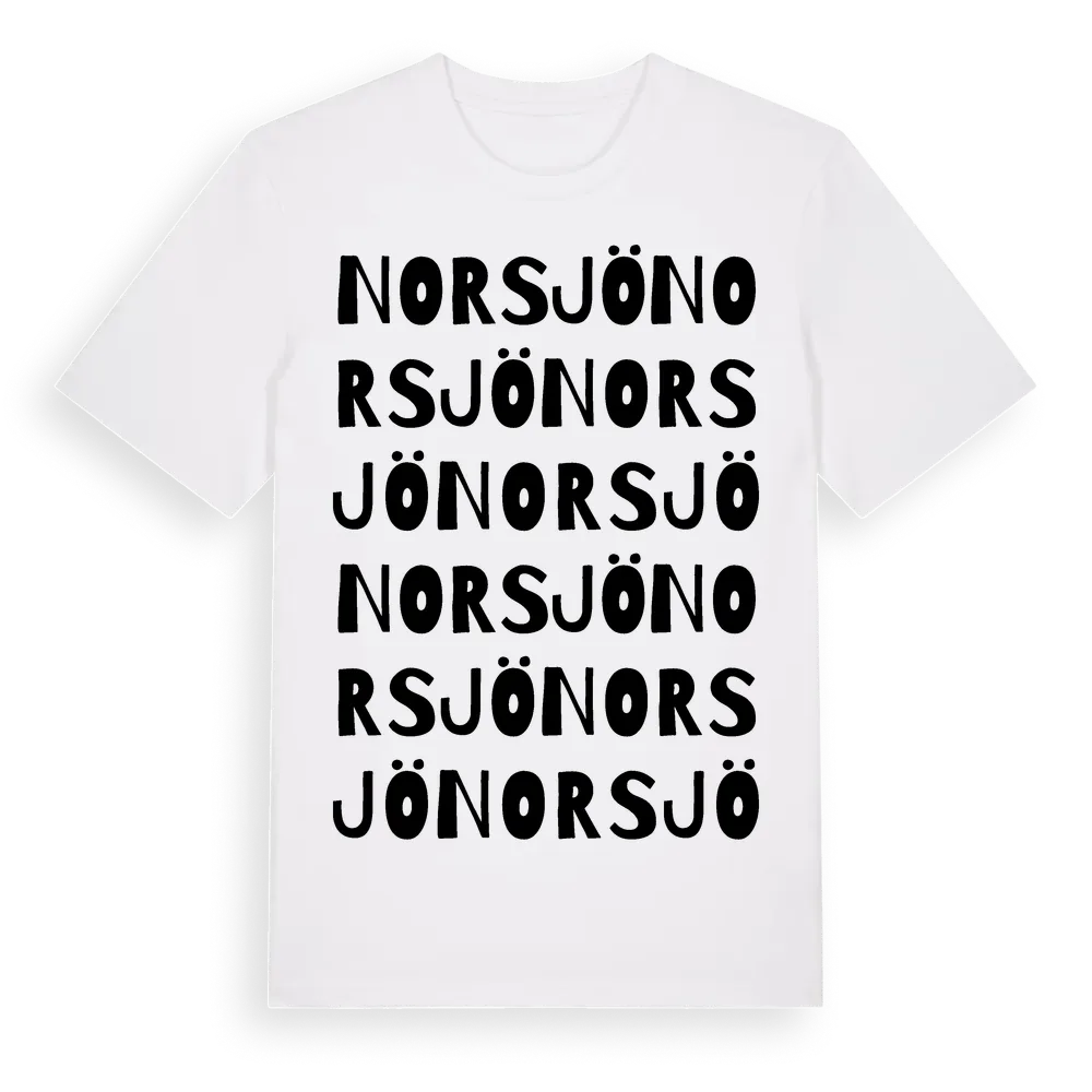 Norsjö ordlek t-shirt är inspirerad av staden Norsjö i Västerbottens län, Sverige. Tröjan är designad för dig som har en speciell koppling till platsen – oavsett om du bor här, har rötterna här eller bara älskar Norsjö.