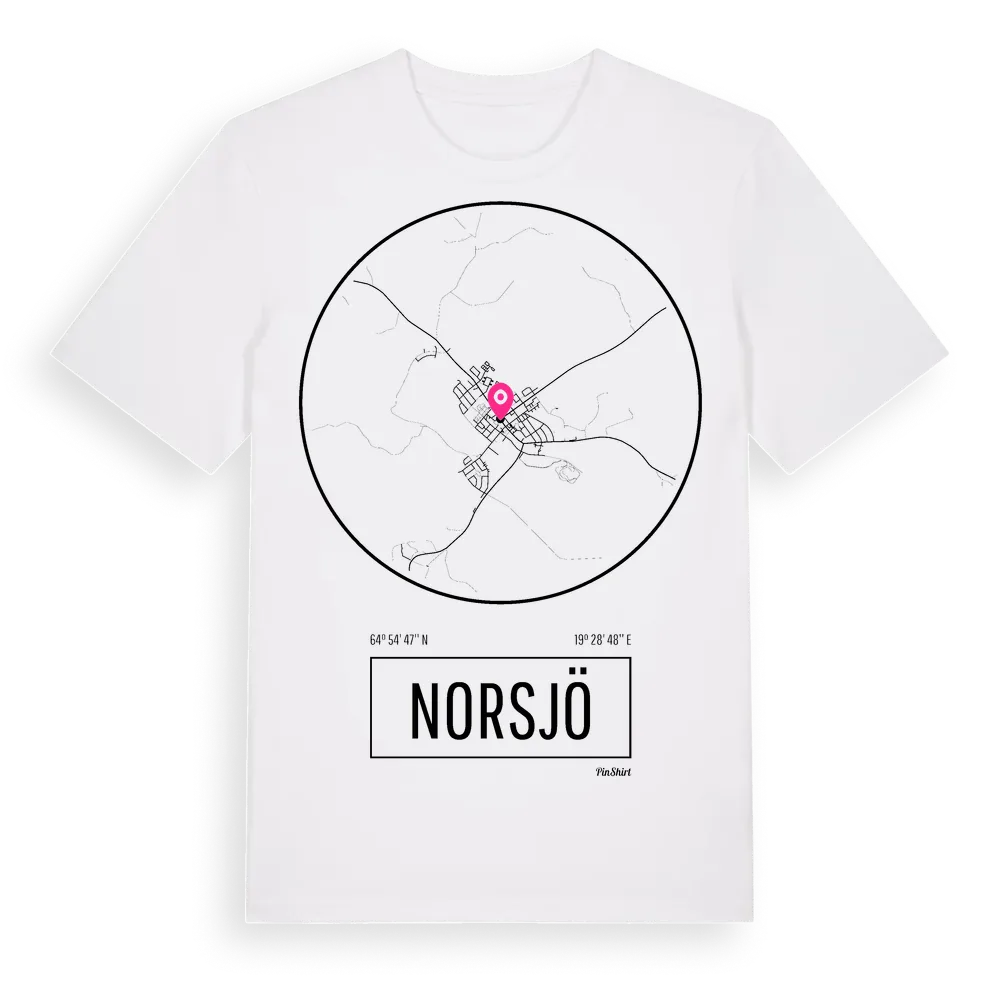 Norsjö t-shirt är inspirerad av staden Norsjö i Västerbottens län, Sverige. Tröjan är designad för dig som har en speciell koppling till platsen – oavsett om du bor här, har rötterna här eller bara älskar Norsjö.