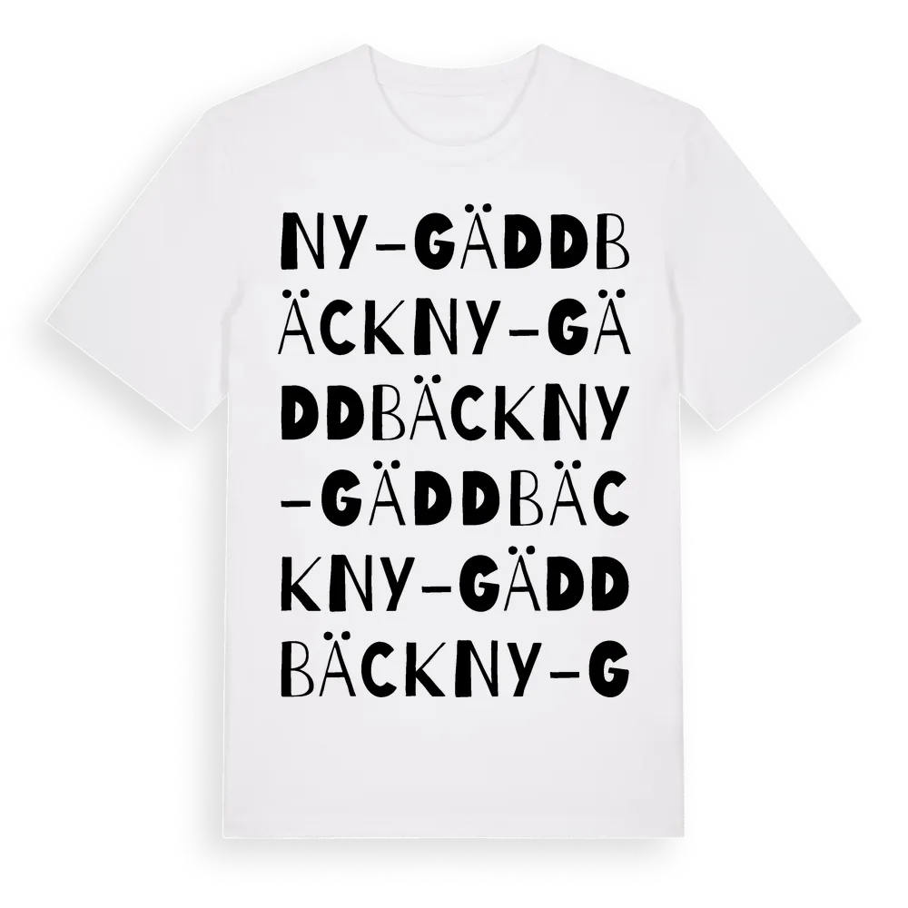 Ny-Gäddbäck ordlek t-shirt är inspirerad av Ny-Gäddbäck i Västerbottens län, Sverige. Tröjan är designad för dig som har en speciell koppling till platsen – oavsett om du bor här, har rötterna här eller bara älskar Ny-Gäddbäck.