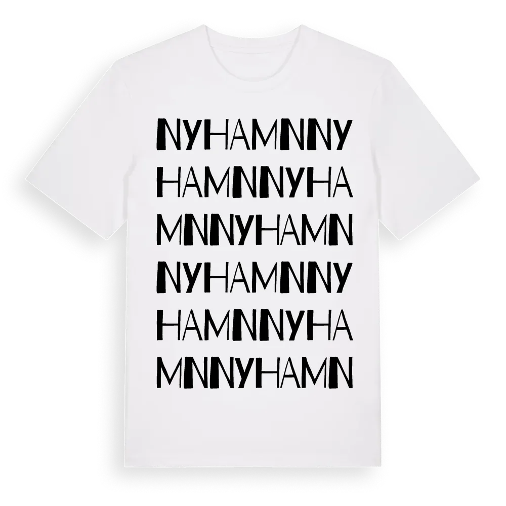 En ordlek byggd på Nyhamns namn. Subtilt och klurig – ett motiv som bara de som verkligen känner platsen fullt ut förstår. Premium bomull, unisex – från Nyhamn i Västerbottens län.