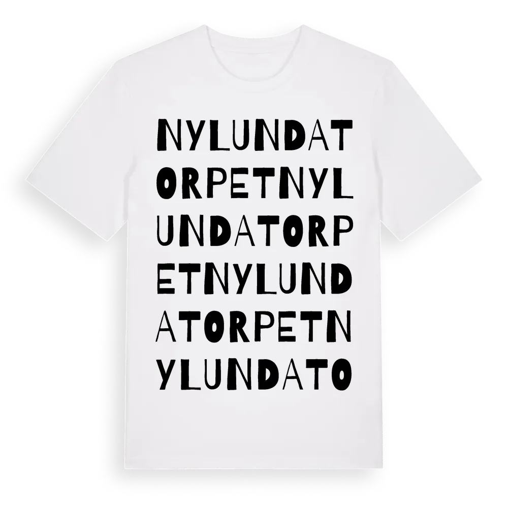 Nylundatorpet ordlek t-shirt är inspirerad av Nylundatorpet i Västerbottens län, Sverige. Tröjan är designad för dig som har en speciell koppling till platsen – oavsett om du bor här, har rötterna här eller bara älskar Nylundatorpet.