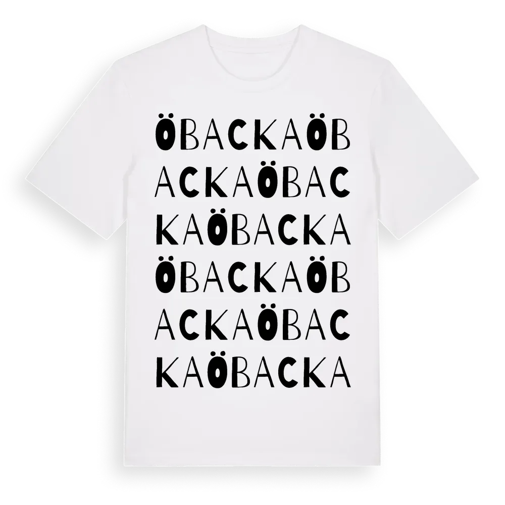 Öbacka ordlek t-shirt är inspirerad av stadsdelen Öbacka i Västerbottens län, Sverige. Tröjan är designad för dig som har en speciell koppling till platsen – oavsett om du bor här, har rötterna här eller bara älskar Öbacka.