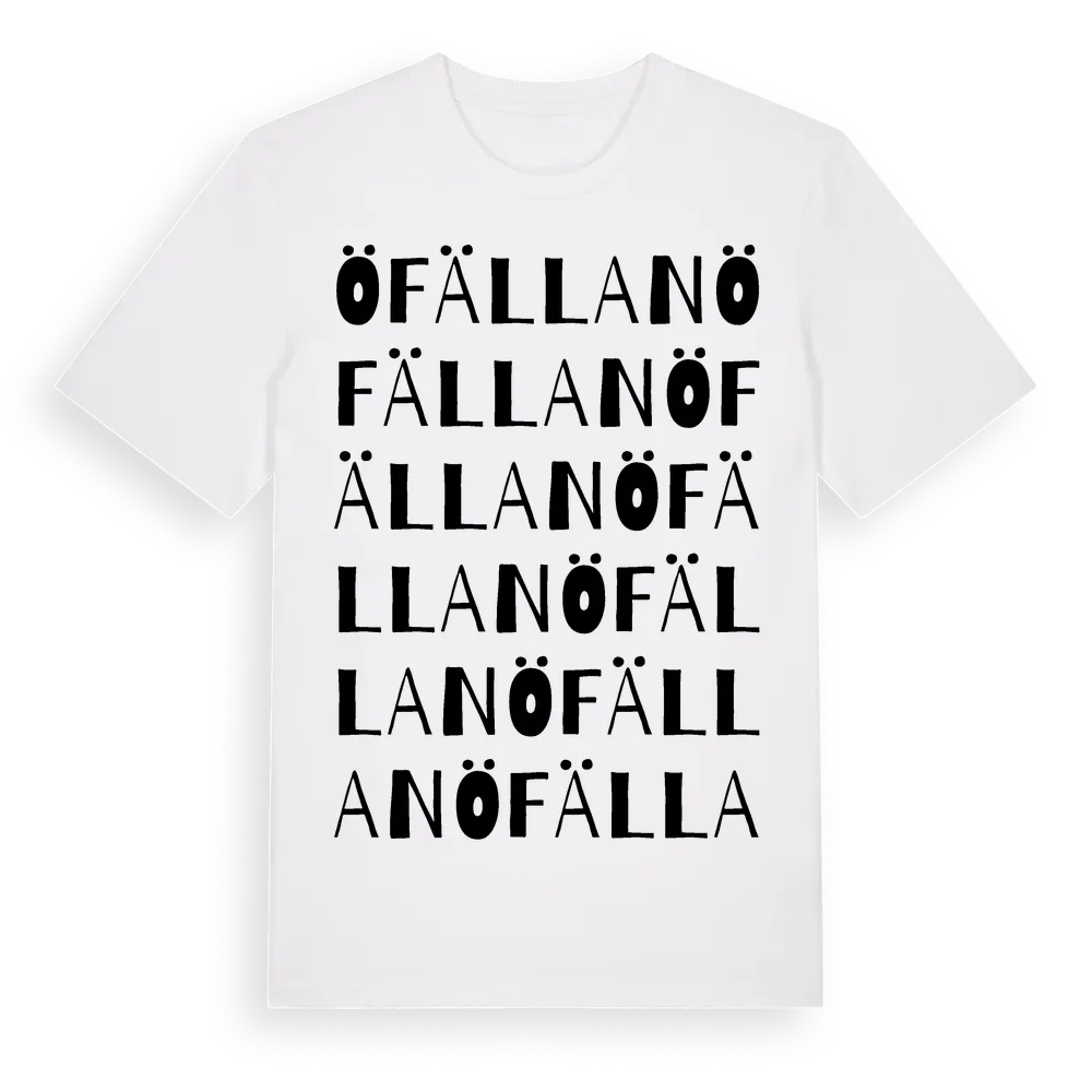 Öfällan ordlek t-shirt är inspirerad av Öfällan i Västerbottens län, Sverige. Tröjan är designad för dig som har en speciell koppling till platsen – oavsett om du bor här, har rötterna här eller bara älskar Öfällan.