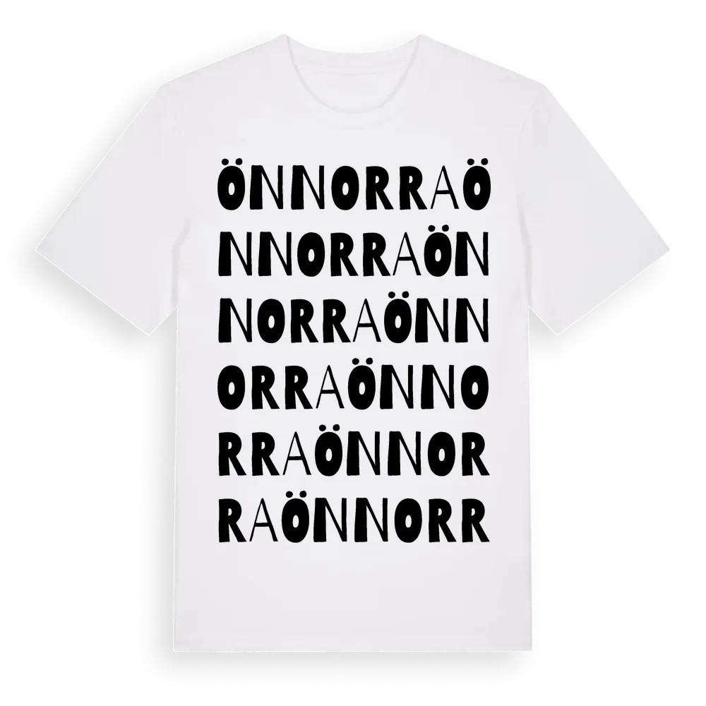 Ön Norra ordlek t-shirt är inspirerad av Ön Norra i Västerbottens län, Sverige. Tröjan är designad för dig som har en speciell koppling till platsen – oavsett om du bor här, har rötterna här eller bara älskar Ön Norra.