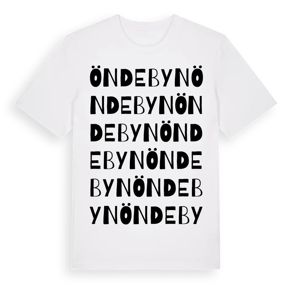 Öndebyn ordlek t-shirt är inspirerad av byn Öndebyn i Västerbottens län, Sverige. Tröjan är designad för dig som har en speciell koppling till platsen – oavsett om du bor här, har rötterna här eller bara älskar Öndebyn.