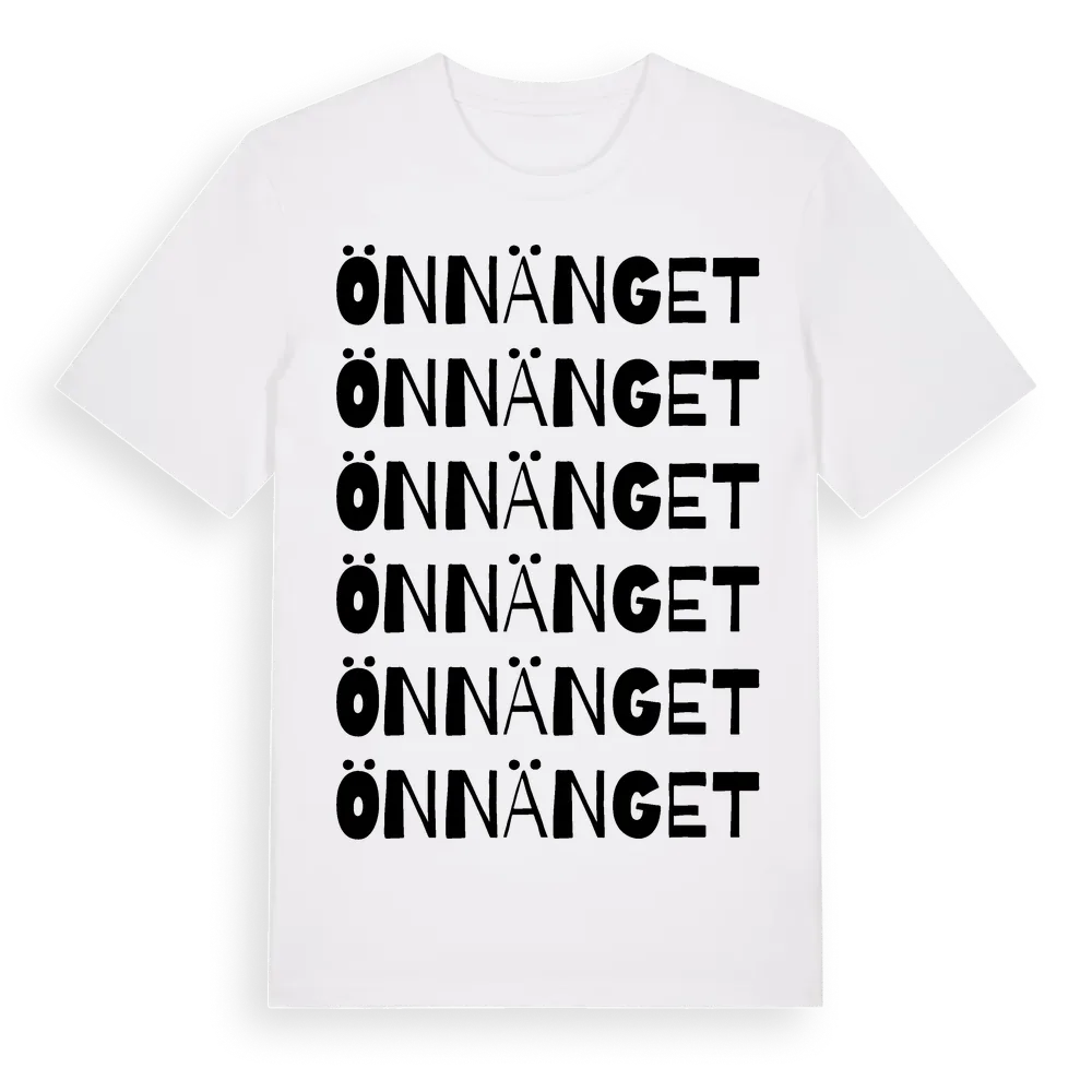 Önnänget ordlek t-shirt är inspirerad av byn Önnänget i Västerbottens län, Sverige. Tröjan är designad för dig som har en speciell koppling till platsen – oavsett om du bor här, har rötterna här eller bara älskar Önnänget.