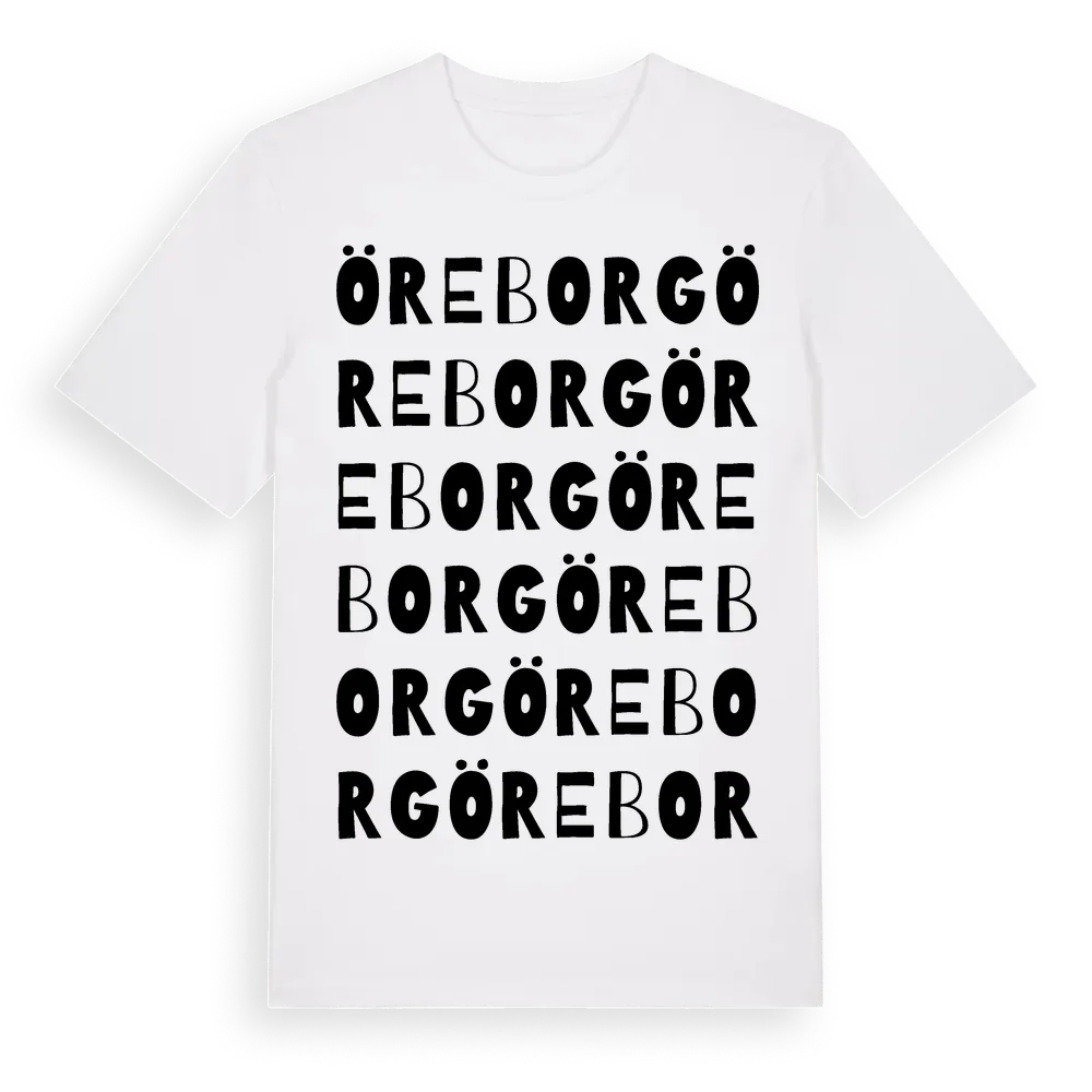 Öreborg ordlek t-shirt är inspirerad av stadsdelen Öreborg i Västerbottens län, Sverige. Tröjan är designad för dig som har en speciell koppling till platsen – oavsett om du bor här, har rötterna här eller bara älskar Öreborg.