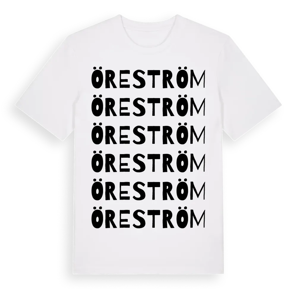 Öreström ordlek t-shirt är inspirerad av byn Öreström i Västerbottens län, Sverige. Tröjan är designad för dig som har en speciell koppling till platsen – oavsett om du bor här, har rötterna här eller bara älskar Öreström.
