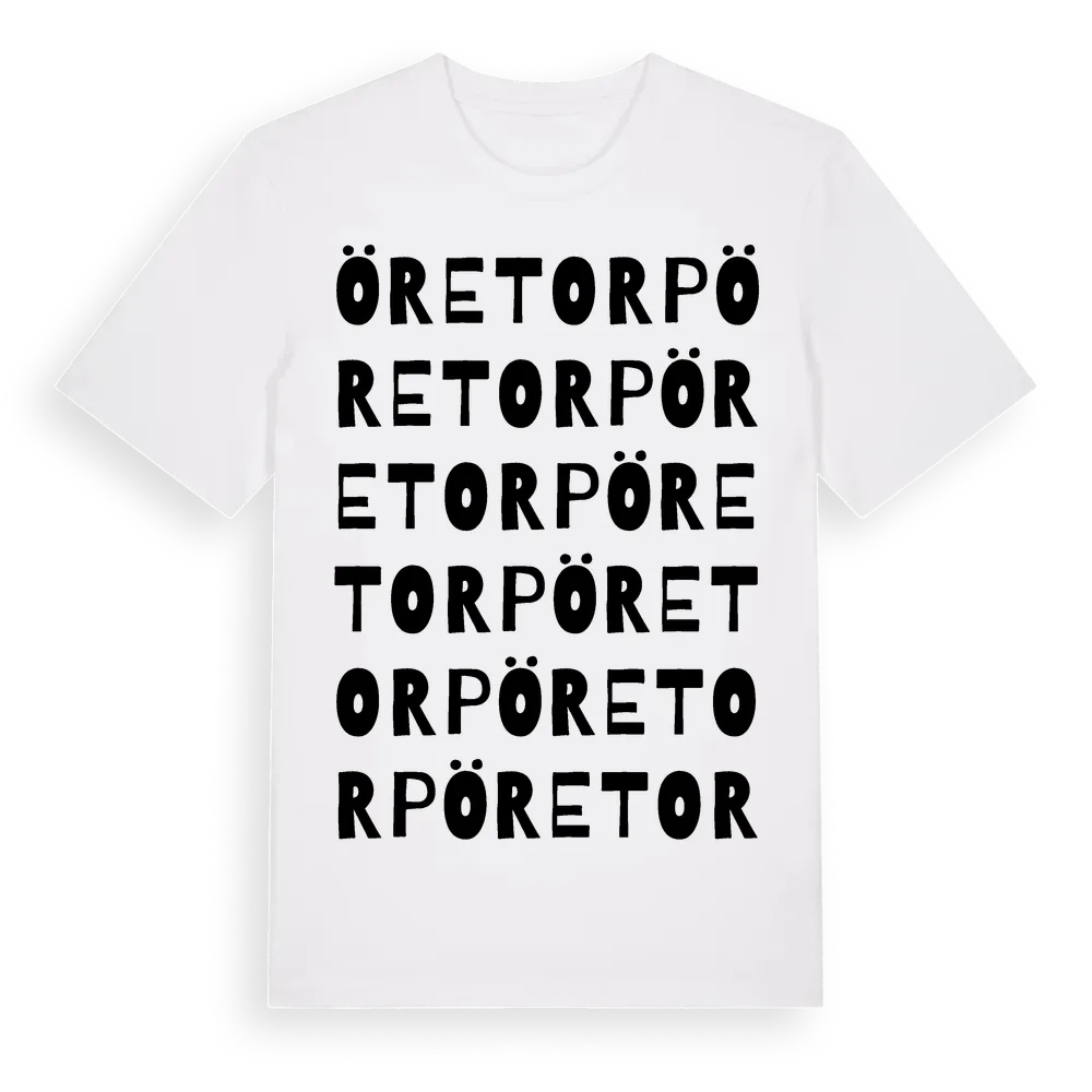 Öretorp ordlek t-shirt är inspirerad av Öretorp i Västerbottens län, Sverige. Tröjan är designad för dig som har en speciell koppling till platsen – oavsett om du bor här, har rötterna här eller bara älskar Öretorp.