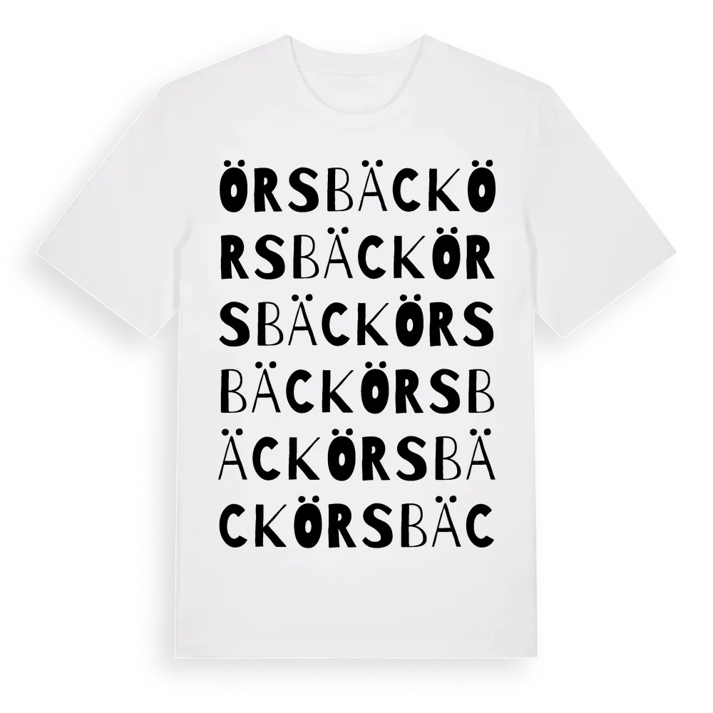 Örsbäck ordlek t-shirt är inspirerad av byn Örsbäck i Västerbottens län, Sverige. Tröjan är designad för dig som har en speciell koppling till platsen – oavsett om du bor här, har rötterna här eller bara älskar Örsbäck.