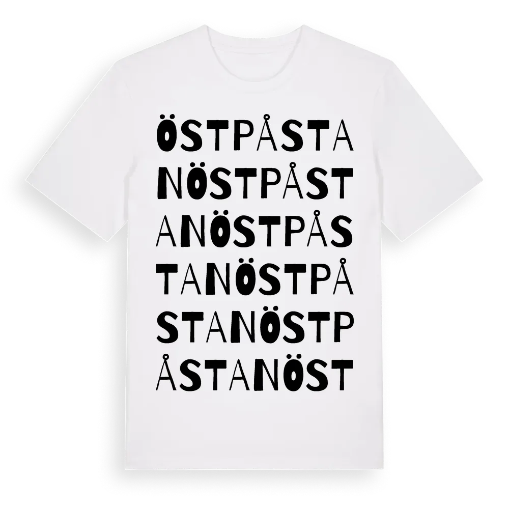 Öst På Stan ordlek t-shirt är inspirerad av Öst På Stan i Västerbottens län, Sverige. Tröjan är designad för dig som har en speciell koppling till platsen – oavsett om du bor här, har rötterna här eller bara älskar Öst På Stan.