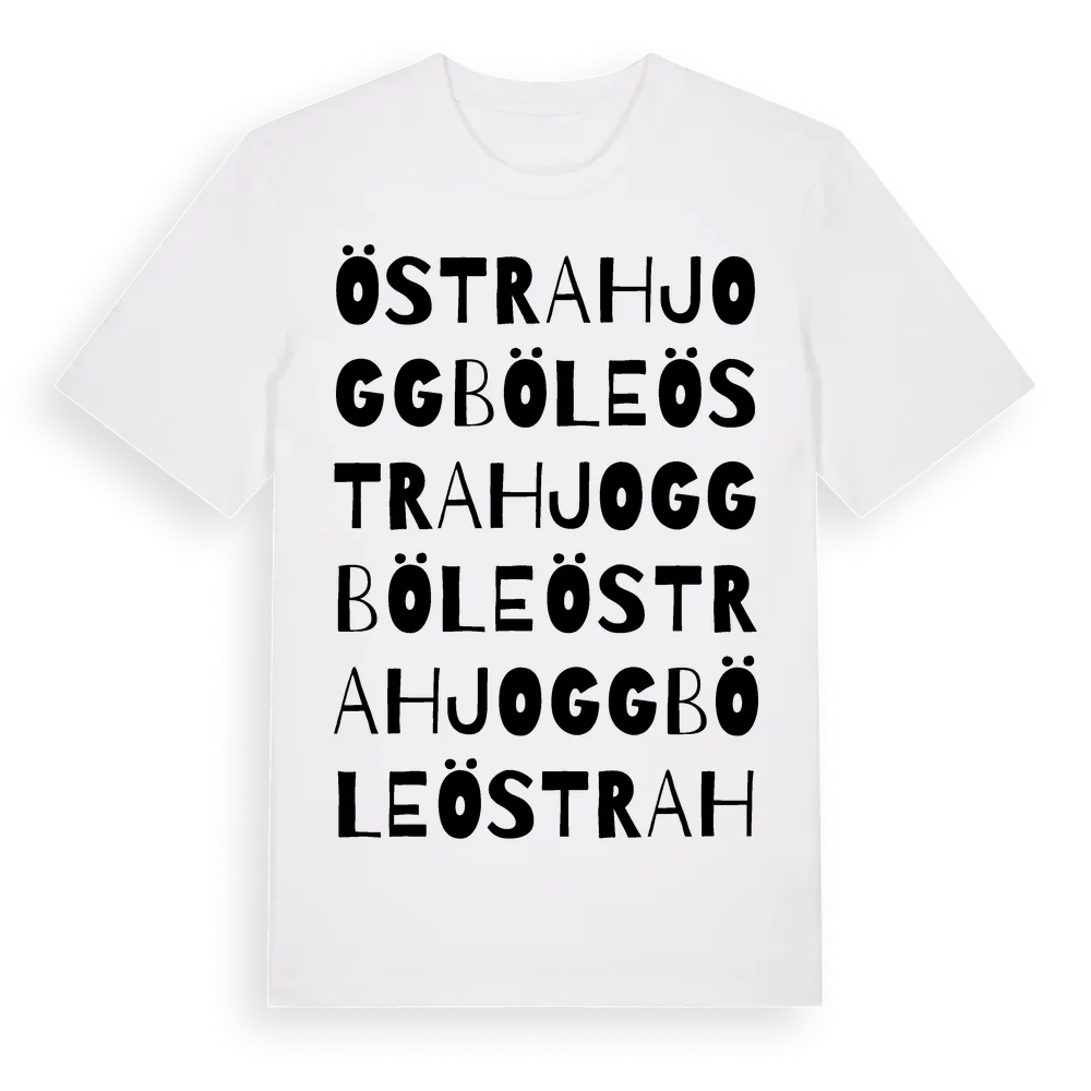 Östra Hjoggböle ordlek t-shirt är inspirerad av byn Östra Hjoggböle i Västerbottens län, Sverige. Tröjan är designad för dig som har en speciell koppling till platsen – oavsett om du bor här, har rötterna här eller bara älskar Östra Hjoggböle.