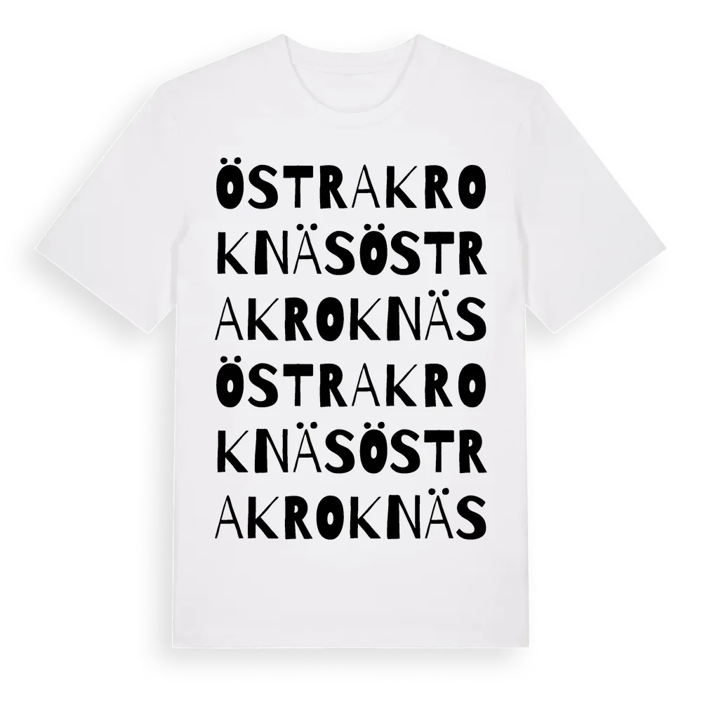 Östra Kroknäs ordlek t-shirt är inspirerad av Östra Kroknäs i Västerbottens län, Sverige. Tröjan är designad för dig som har en speciell koppling till platsen – oavsett om du bor här, har rötterna här eller bara älskar Östra Kroknäs.