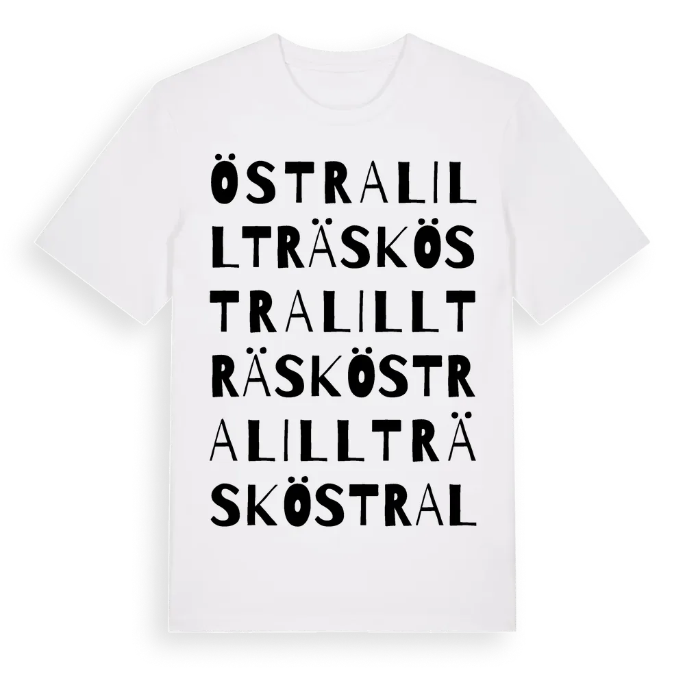 Östra Lillträsk ordlek t-shirt är inspirerad av Östra Lillträsk i Västerbottens län, Sverige. Tröjan är designad för dig som har en speciell koppling till platsen – oavsett om du bor här, har rötterna här eller bara älskar Östra Lillträsk.